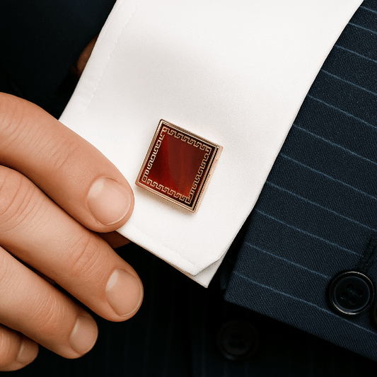 Émail sobre, nacre, pierre ou motif fin : un accent de couleur peut rappeler subtilement la pochette de costume ou la cravate, sans tomber dans l’ensemble assorti strict.