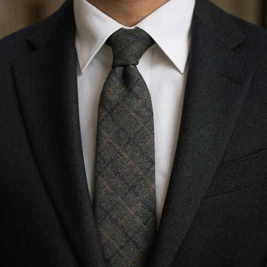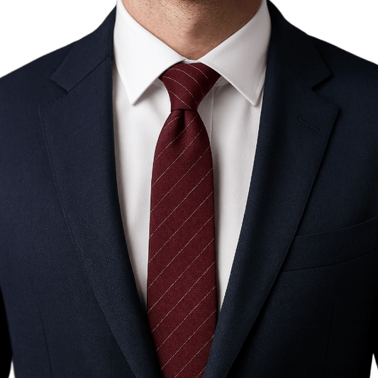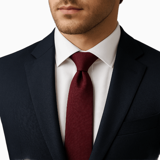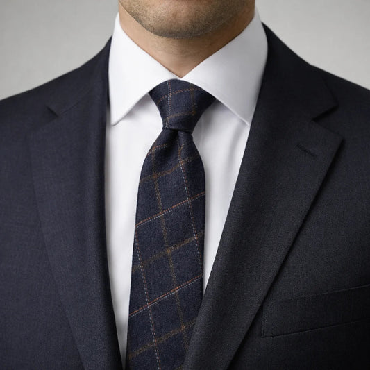 Une cravate bien proportionnée équilibre le col et les revers. Visez une largeur cohérente avec vos revers ; la pointe doit effleurer la boucle de ceinture une fois nouée.