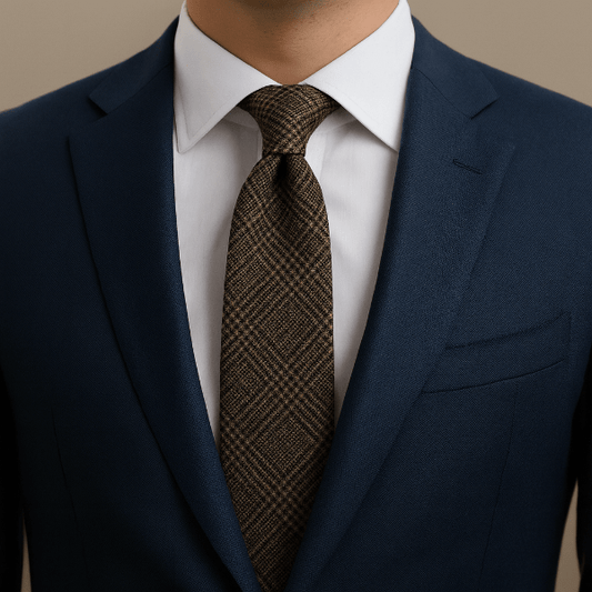 Cravate Coton Prince-de-Galles Brun Noisette