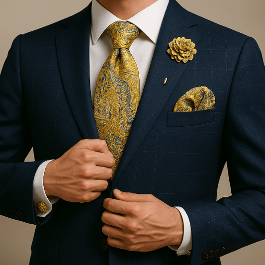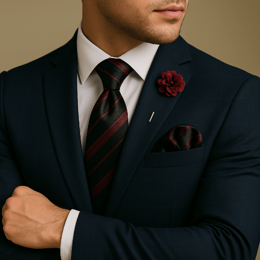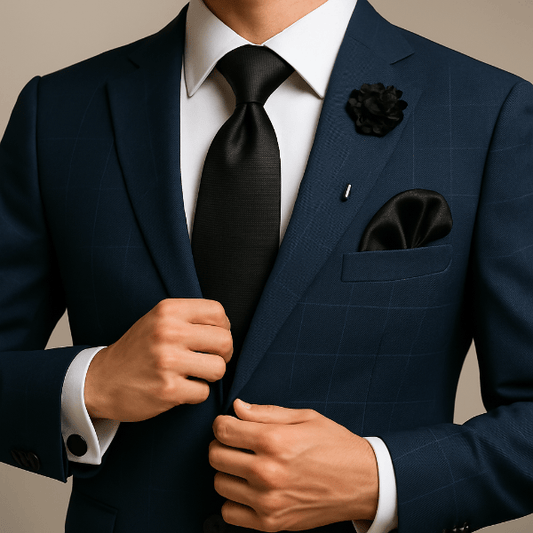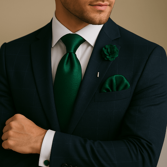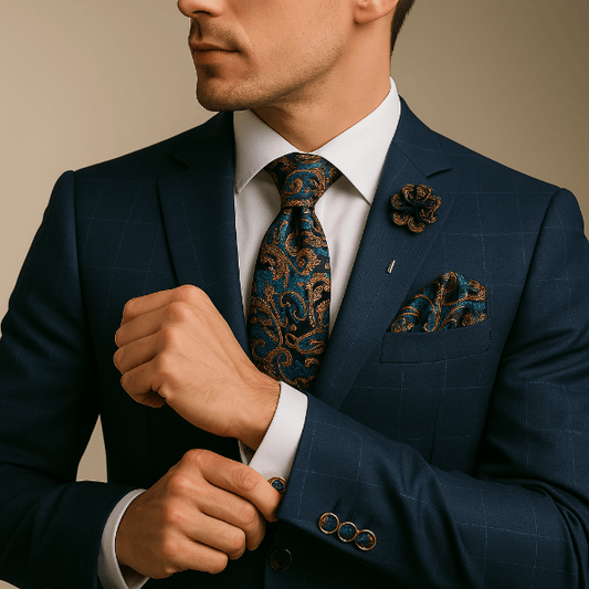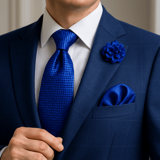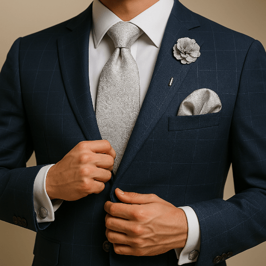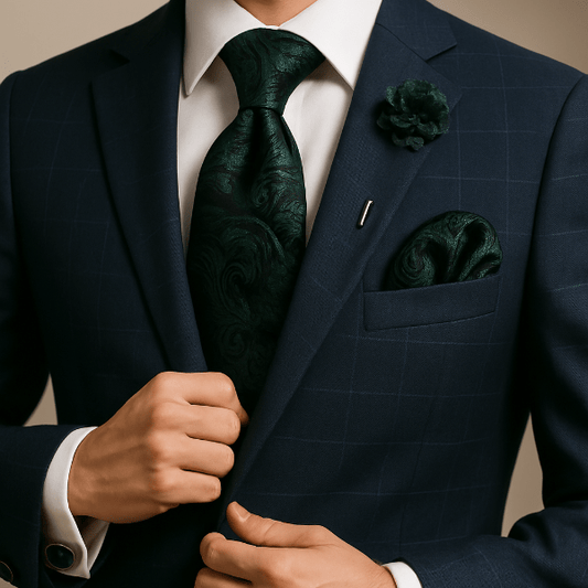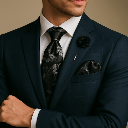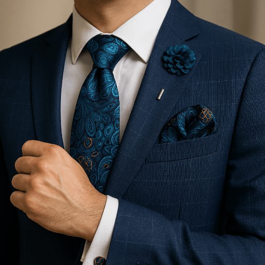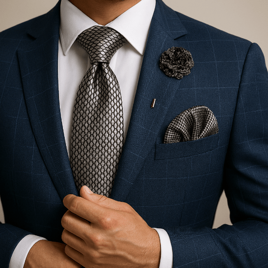 Un uni profond renforce un costume texturé ; un micro-motif dynamise une veste sobre. Coordonnez par teinte ou texture plutôt que de copier le motif à l’identique.