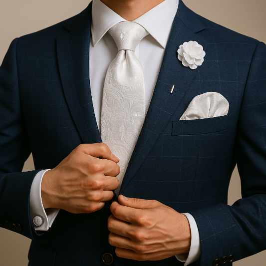 Complétez votre tenue avec une pochette de costume coordonnée, des boutons de manchette harmonisés et une pince à cravate au métal assorti. Pour les cérémonies, explorez aussi nos nœuds papillon.