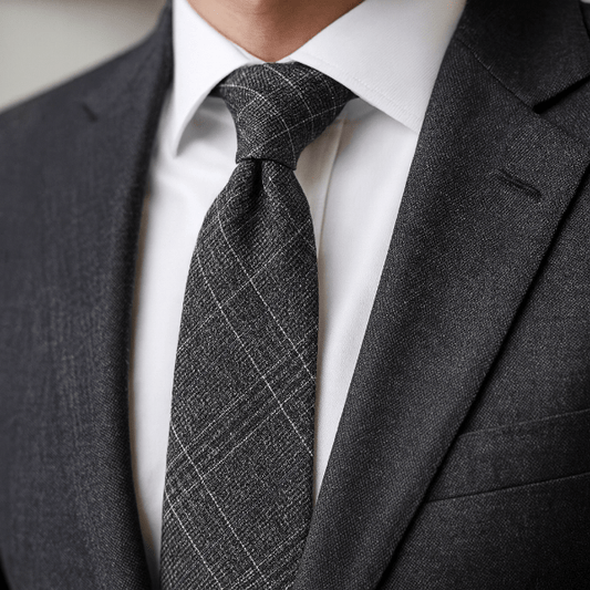 Une cravate bien proportionnée équilibre le col et les revers. Visez une largeur cohérente avec vos revers ; la pointe doit effleurer la boucle de ceinture une fois nouée.