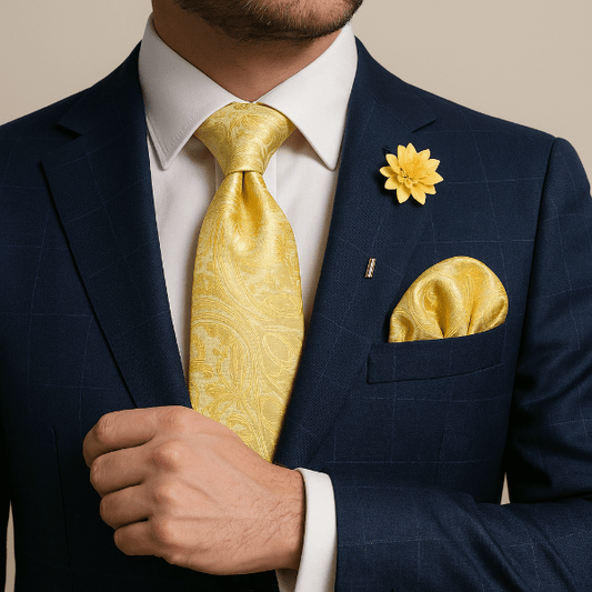 Complétez votre tenue avec une pochette de costume coordonnée, des boutons de manchette harmonisés et une pince à cravate au métal assorti. Pour les cérémonies, explorez aussi nos nœuds papillon.