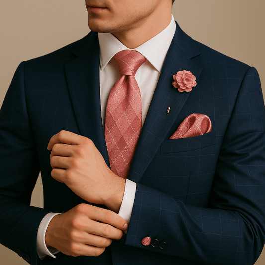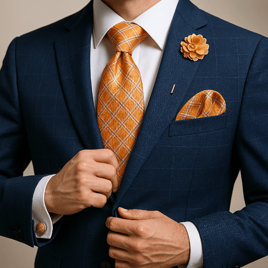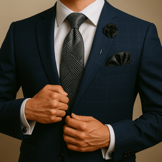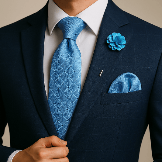 Un uni profond renforce un costume texturé ; un micro-motif dynamise une veste sobre. Coordonnez par teinte ou texture plutôt que de copier le motif à l’identique.