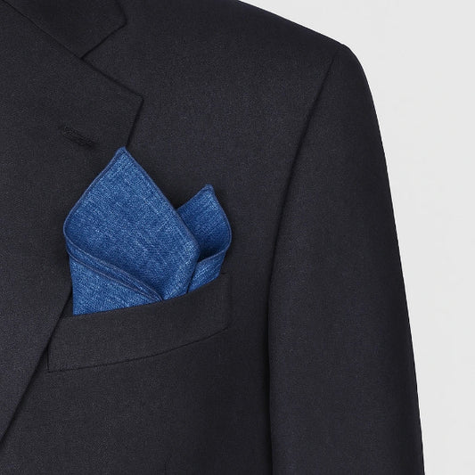 Pochette de Costume en Coton Bleu Indigo Chiné